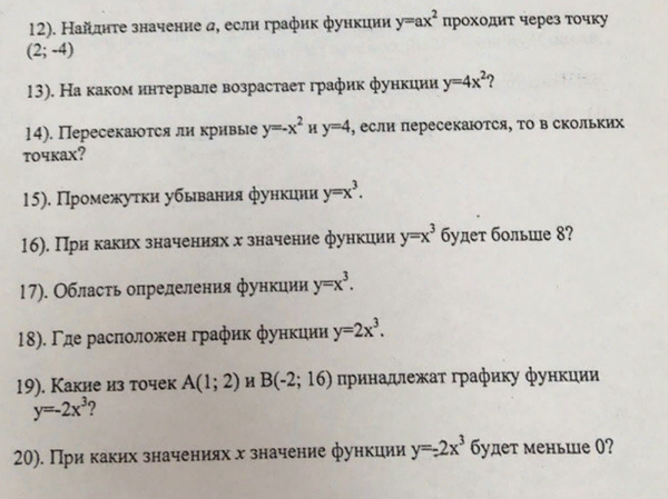2. Найдите значение а, если график функции y=ax^2 проходит через точку (2;-4)