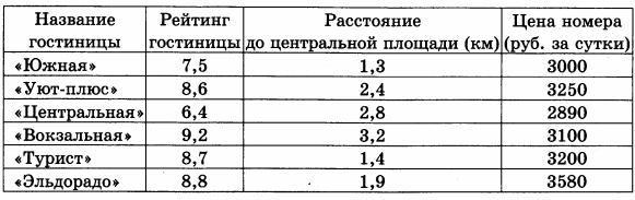 Любовь Игнатьевна собирается в туристическую поездку на три дня в некоторый город. В таблице дана информация о гостиницах в этом городе со свободными номерами на время её поездки.