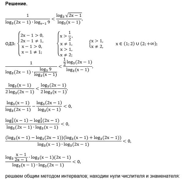 ОДЗ: х ∈ (1;2)U(2;+ бесконечность)
