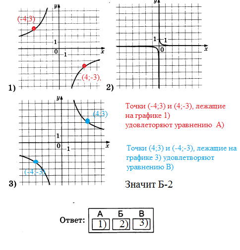 Установите соответствие между функциями и их графиками. ФУНКЦИИ А) y=-12/x Б) y=1/12x В) y=12/x