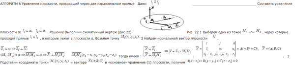 Написать уравнение плоскости, проходящей через две параллельные прямые.