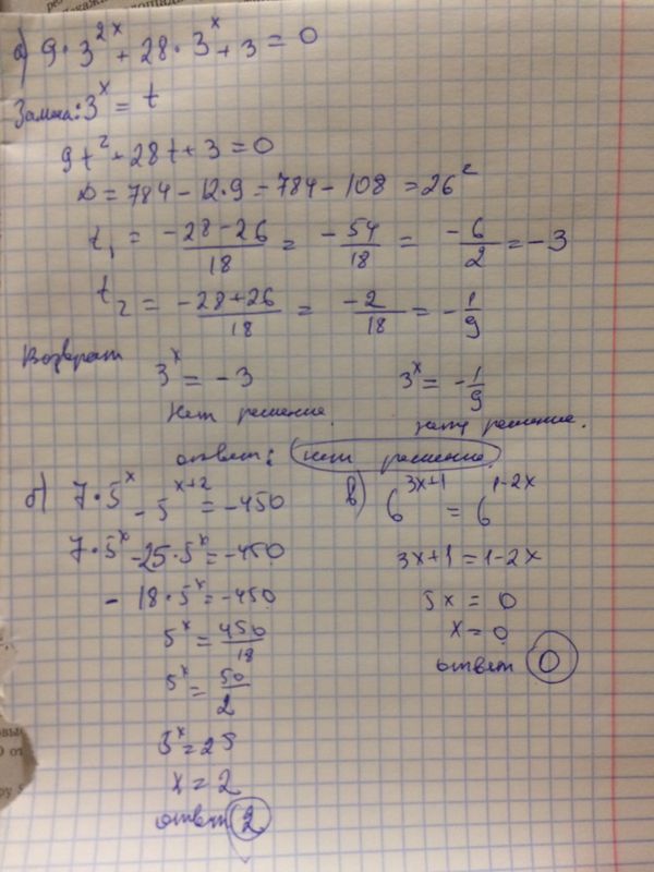 a) 9*3^(2x) + 28*3^x +3 = 0; б) 7*5^x...