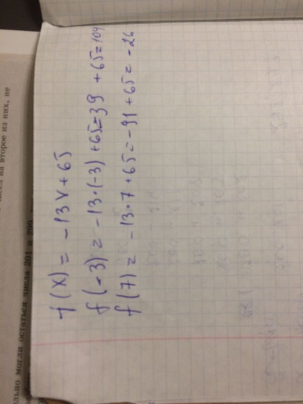 Дана функция f(x)=-13x+65. а) найти f(-3);f(7)