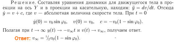 На наклонной плоскости лежит тело. Коэффициент трения тела о плоскость ktga, где а — угол наклона плоскости к горизонту. Тело, толчком вдоль наклонной плоскости, приводят в движение с начальной скоростью v0. Найти установившуюся скорость скольжения тела в зависимости от величины v0 и направления толчка