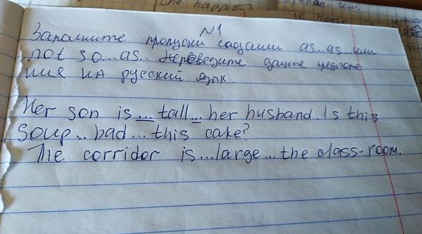 Her son is as tall as her husband - её сын такой же высоки, как и её муж Is this soup not so bad as this cake? - этот суп не такой же плохой, как этот торт? The corridor is not so large as the classroom - коридор не такой большой, как этот класс