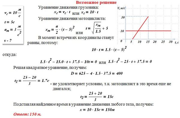 Мимо остановки по прямой улице проезжает грузовик со скоростью 10 м/с. Через 5 с от остановки вдогонку грузовику отъезжает мотоциклист, движущийся с ускорением 3 м/с^2. На каком расстоянии от остановки мотоциклист догонит грузовик?