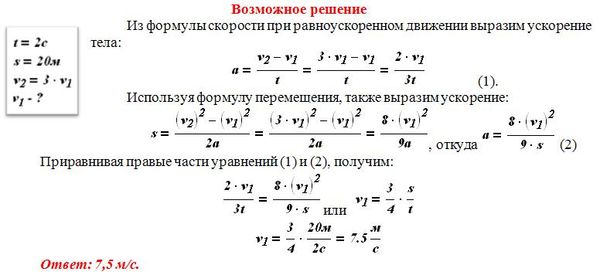 За 2 с прямолинейного равноускоренного движения тело прошло 20 м, увеличив свою скорость в 3 раза. Определите начальную скорость тела.