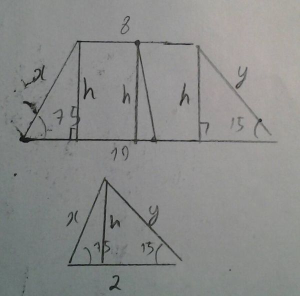 Основания трапеции равны 8 и 10 см, углы 15 и 75 градусов. Найти длину отрезка, соединяющего середины оснований?