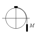 Система из грузов m и M и связывающей их лёгкой нерастяжимой нити в начальный момент покоится в вертикальной плоскости, проходящей через центр закреплённой сферы. Груз m находится в точке А на вершине сферы (см. рисунок). В ходе возникшего движения груз m отрывается от поверхности сферы, пройдя по ней дугу 30°. Найдите массу М, если m = 100 г. Размеры груза m ничтожно малы по сравнению с радиусом сферы. Трением пренебречь. Сделайте схематический рисунок с указанием сил, действующих на грузы.