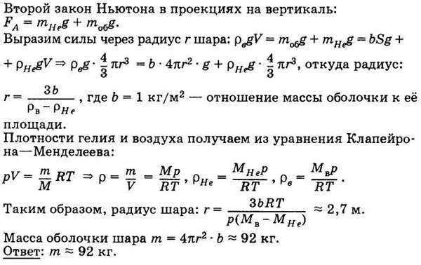 Сферическую оболочку воздушного шара делают из материала, квадратный метр которого имеет массу 1 кг. Шар наполняют гелием при атмосферном давлении 10^5 Па. Определите минимальную массу оболочки, при которой шар начнёт поднимать сам себя. Температура гелия и окружающего воздуха одинакова и равна 0 °С. (Площадь сферы S = 4πr^2, объём шара V=4/3πr^3.)