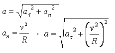 Тело движется по кривой с постоянным тангенциальным ускорением a=0,2 м/с^2. Определить его полное ускорение в точке траектории с радиусом кривизны R=3 м, если в этой точке тело движется с линейной скоростью v= 2 м/с
