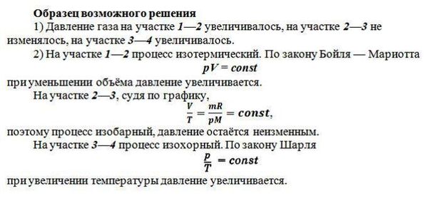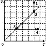 Ha VT-диаграмме показано, как изменялись объём и температура некоторого постоянного количества разреженного газа при его переходе из начального состояния 1 в состояние 4. Как изменялось давление газа p на каждом из трёх участков 1—2, 2—3, 3—4: увеличивалось, уменьшалось или же оставалось неизменным? Ответ поясните, указав, какие физические явления и закономерности вы использовали для объяснения.