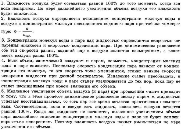 В сосуде под поршнем находится воздух при влажности 100% и немного воды. Поршень медленно поднимают, увеличивая занимаемый воздухом объем и поддерживая его температуру постоянной. Опираясь на свои знания по молекулярной физике, объясните, как с течением времени будет изменяться влажность воздуха в сосуде.