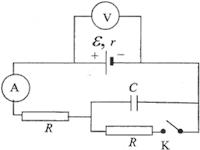 На рисунке показана электрическая цепь, содержащая источник тока (с внутренним сопротивлением, два резистора, конденсатор, ключ К, а также амперметр и идеальный вольтметр. Как изменятся показания амперметра и вольтметра в результате замыкания ключа К? Ответ поясните, указав, какие физические явления и закономерности вы использовали для объяснения.