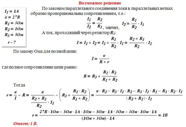 В цепи, изображенной на рисунке амперметр показывает 1 А. Найдите внутреннее сопротивление источника, если его ЭДС 27 В.