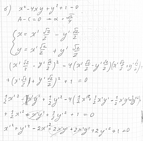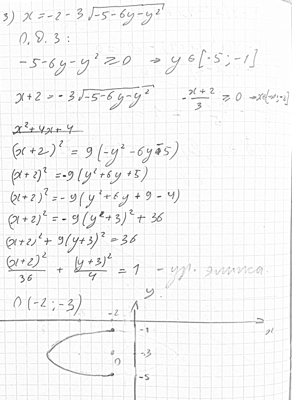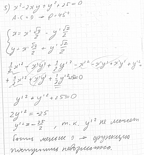4. Привести уравнения линий к каноническому виду и построить их: 1) x^2+y^2-13x+2y-3 = 0; 2) 5y^2-4x^2+16x-36 = 0 3) x = -2-3sqrt(-5-6y-y^2) 4) x = x^2-5y+6 5) x^2-2xy+y^2+25 = 0 6) x^2-4xy+y^2+1 = 0