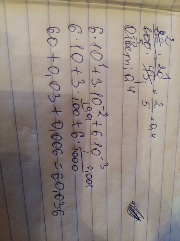 1. Найдите значение выражения [m] 0,86 \cdot \frac{43}{20} [/m]. 2. Найдите значение выражения [m] 6 \cdot 10^{1} + 3 \cdot 10^{-2} + 6 \cdot 10^{-3} [/m].