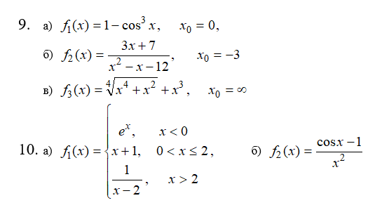 Определить характер функций (б.б., б.м.) f1(x), f2(x), f3(x) в точке x0 и выделить главную часть.