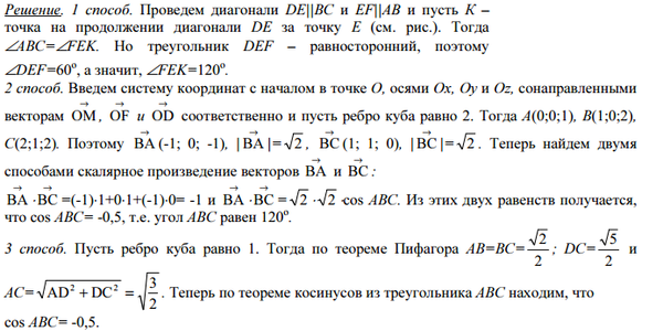 Дан куб. А, В и С – середины его ребер (см. рисунок). Чему равен угол АВС?