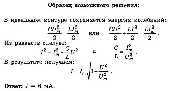В идеальном колебательном контуре амплитуда колебаний силы тока в катушке индуктивности I_(m) = 10 мА, а амплитуда напряжения на конденсаторе U_(m) = 4,0 В. В момент времени t напряжение на конденсаторе равно 3,2 В. Найдите силу тока в катушке в этот момент.