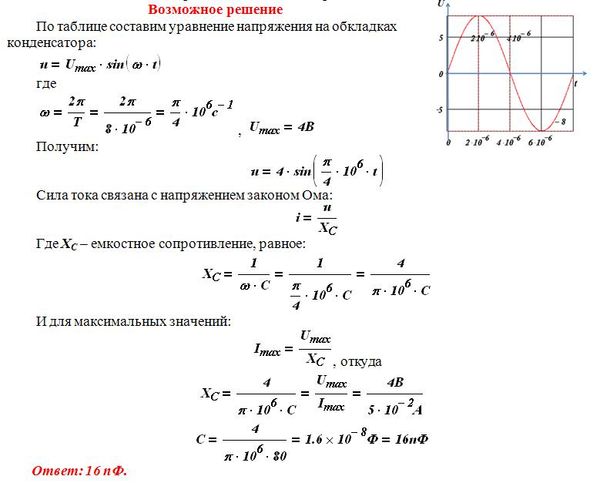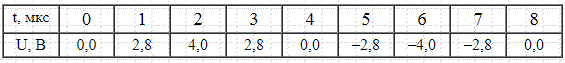 В идеальном колебательном контуре, состоящем из конденсатора и катушки индуктивности, амплитуда силы тока I_(m) = 50 мА. В таблице приведены значения разности потенциалов на обкладках конденсатора, измеренные с точностью до 0,1 В в последовательные моменты времени.