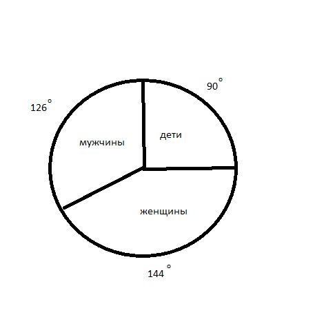 3,6 градусов*35 =126 градусов - сектор обозначающий количество мужчин