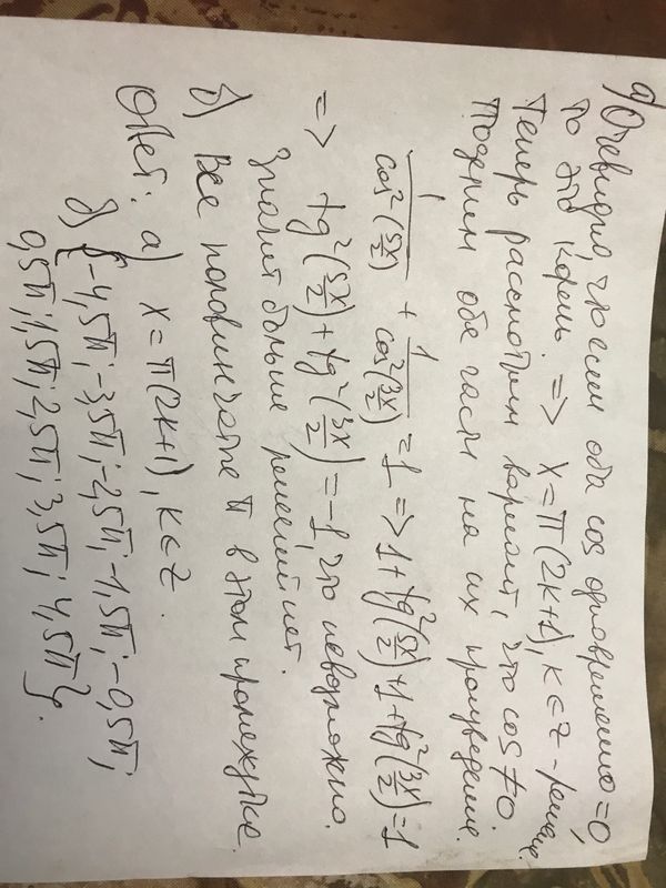 а) Решите уравнение cos^2((3/2)x)+cos^2((5/2)x) = cos^2((3/2)x)*cos^2((5/2)x) б) Найдите решения уравнения, принадлежащие отрезку [–5Pi; 5Pi].
