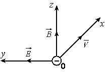 Электроны, вылетевшие в положительном направлении оси OX под действием света с катода фотоэлемента, попадают в электрическое и магнитное поля (см. рисунок). Какой должна быть частота падающего света ν, чтобы в момент попадания самых быстрых электронов в область полей действующая на них сила была направлена против оси OY? Работа выхода для вещества катода 2,39 эВ, напряжённость электрического поля 3•10^2 В/м, индукция магнитного поля 10^(−3) Тл.