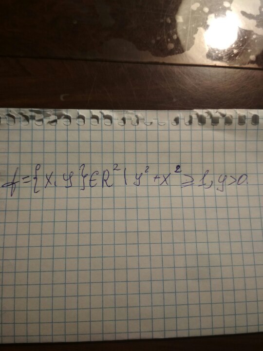 D={x, y} принадлежит R^2 | y^2+x^2 > =1, y > 0