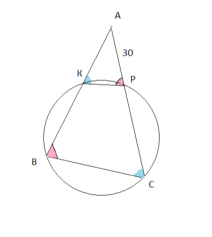 ∠ КРС+∠ КВС= 180 градусов, Угол АРК - смежный с углом КРС.