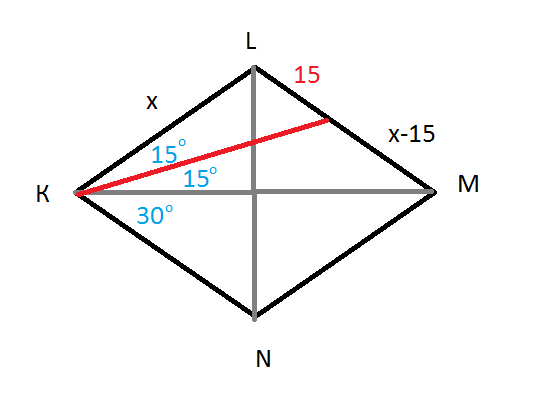 КМ=xsqrt(3) по теореме косинусов из треугольника KLM