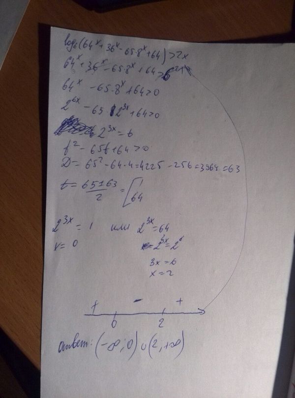 log6(64^x+36^x-65*8^x+64) > =2x...