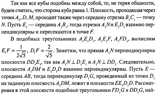 В кубе ABCDA1B1C1D1 найдите угол между прямой А1D1 и плоскостью, проходящей через точки A1, D и M—середину ребра СС1.