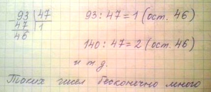 Существует ли число, которое при делении на 47 даёт в остатке 46 ?