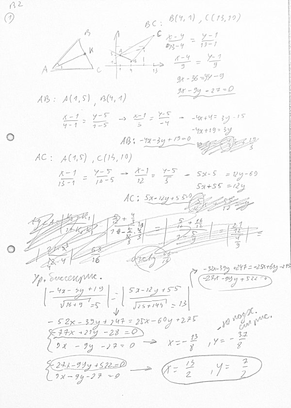 |AC|=sqrt((13-1)^2+(10-5)^2)=sqrt(144+25)=sqrt(169)=13