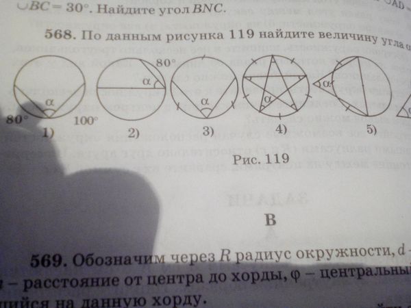 Зделать нужно нотолько 568 (1) Условия по данным рисунка 119 найдите величину угла а