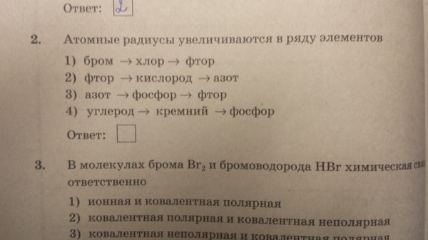 Атомные радиусы увеличиваються в ряду...