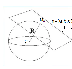 Уравнение плоскости с нормальным вектором vector{n}=(a;b;c) и проходящей через точку М_(о)(x_(o);y_(o);z_(o)) имеет вид