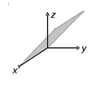 Значит, проходит через начало координат и точку (1;0;0) оси Ох