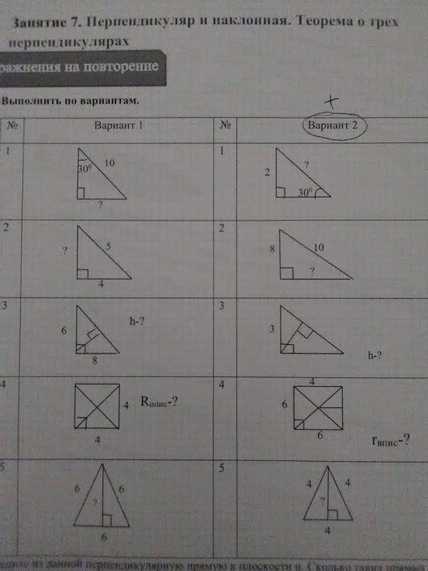 Задание 7. Перпендикуляр и наклонная. Теорема о трех перпендикулярах.