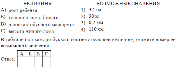 Установите соответствие между величинами и их возможными значениями: к каждому элементу первого столбца подберите соответствующий элемент из второго столбца.