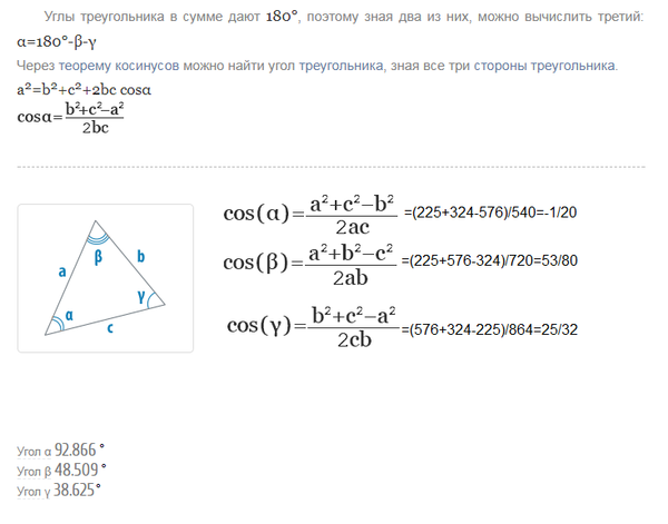Все что нужно знать, чтобы решить эту задачу, знать теорему косинусов. Подставляешь свои числа в равенство в приложение, выражаешь косинус угла.
