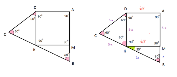 В четырёхуголнике АВСД уголь А=90градусов угол В=С=60,АВ=5.Найти СД?