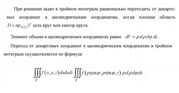Продолжение. Начало см в приложении 0 меньше или равно z меньше или равно 4 0 меньше или равно r меньше или равно 2 0 меньше или равно phi меньше или равно 2Pi V= ∫^4 _(0)dz ∫^(2Pi) _(0)d phi ∫^(2) _(0)rdr= =4*2Pi*(r^2/2)|^(2)_(0)=16Pi