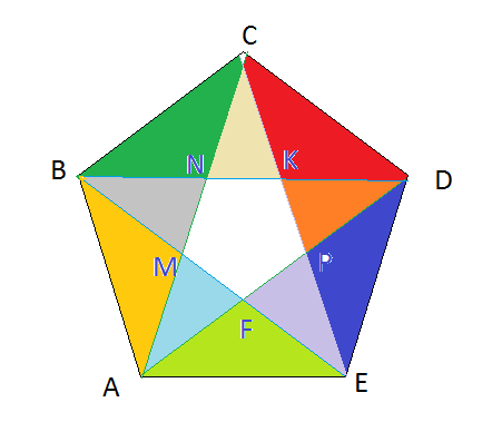 Разные треугольники обозначены разным цветом и можно раскраску продолжить
