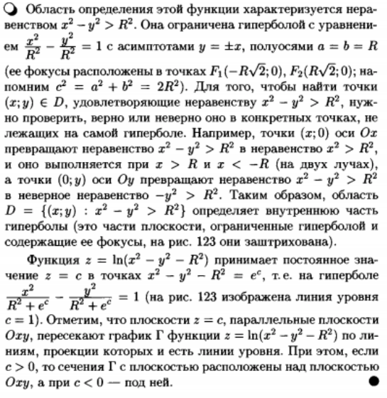 Найти область определения функции z = In(х^2-у^2-R^2), R > 0, а также построить некоторые линии уровня для этой функции.