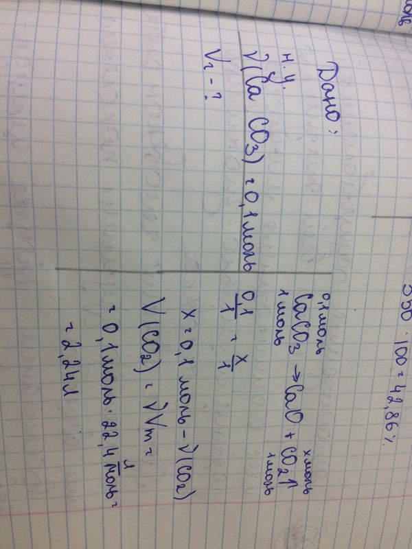 ХИМ 29) Вычислите объём (л, н.у.) газа, образовавшегося при разложении 0,1 моль карбоната кальция. (Запишите число с точностью до сотых.)