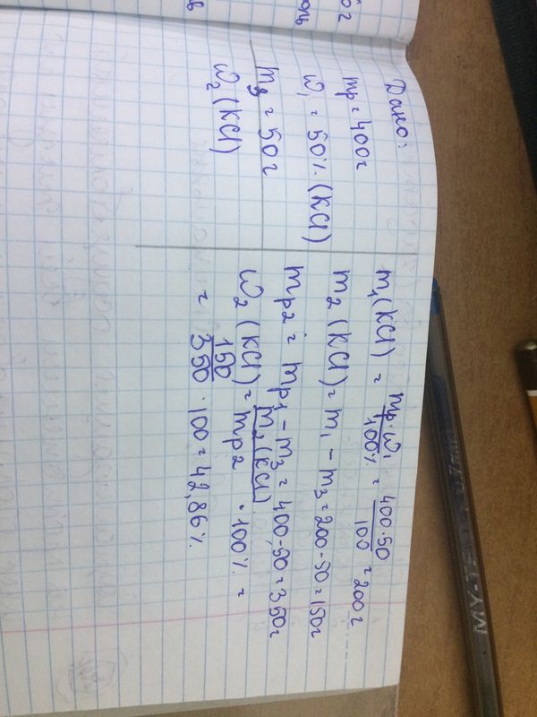 ХИМ 27) Из 400 г 50% -ного раствора хлорида калия при охлаждении выделилось 50 г растворенного вещества. Вычислите массовую долю (% ) хлорида калия в конечном растворе. (Запишите целое число).