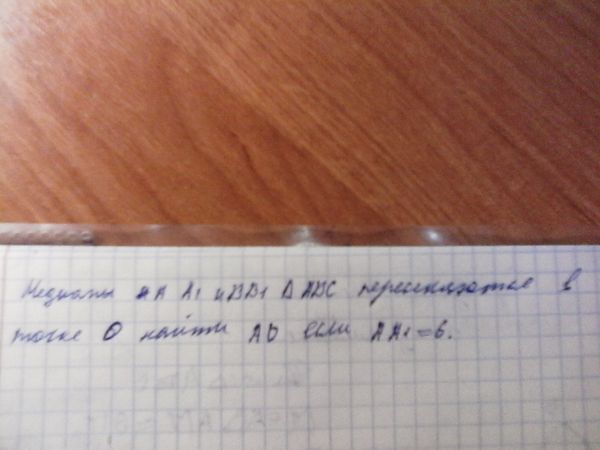 Медианы треугольника в точке пересечения делятся в отношении 2:1, считая от вершины. AO:OA1=2:1 AA1=6 AO=(2/3)AA1=(2/3)*6=4