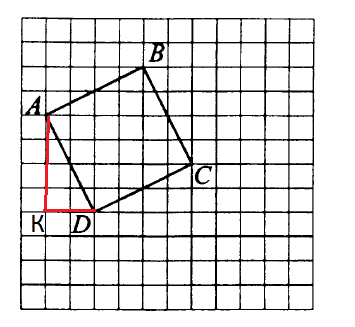 Выделим прямоугольный треугольник АКD. AK= 4 клеткам=4·(√2/2)=2√2 KD= 2 клеткам = 2·(√2/2)=√2 По теореме Пифагора AD^2=AK^2+KD^2=(2√2)^2+(√2)^2=8+2=10 AB=BC=CD=AD=sqrt(10) r=AD/2=(sqrt(10))/2